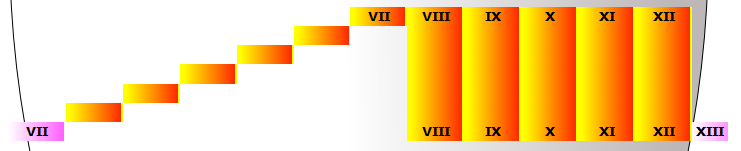 Dans la page précédente, on voit l’exemple d’un cluster entier. Ce qu’il y est censé d’être significatif, mais posons un cluster de 6 notes, comme ci-dessus, dans un espace dodécatone. Le cluster est entier, et il reste des places vides. Qui dit vide, dit espace libre pour les mouvements des éléments. Avant, que çà ne se produise. On peut développer ce cas clustérien, de façon chronologiquement ordonnée. Ainsi, nous pourrons déclarer quelques statistiques supplémentaires, au sujet du domaine clustérien !