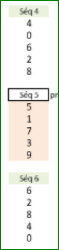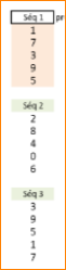 En partant de un jusqu'à six unités, et d'à chacune unité ajouter six. Comme par exemple l'unité un à laquelle est ajoutée six, de façon itérative : 1, 7, 13, 19, 25... Cette série a pour valeurs unitaires (1, 7, 3, 9, 5), elle est répétée et alignée. Les éléments de cette répétition ont étés occultés de leurs parts décimales, ce qui n'empêche pas leur poursuite en temps réel. |