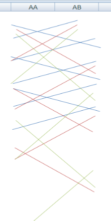 ce classeur Excel excelle L'organisation offerte par l'harmonie des nombres, dessine des lignes colorées. Cette sélection nommée a des temps linéaires et du vide, où chaque ligne oblique est un tempérament. La résolution graphique 2D indique une incohérence dans la localisation des extrémités, ou un considérable éloignement remarqué entre les nombres un et sept sur le tableau. |