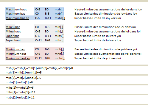 _ Table des gammes fondamentales. Si les noms usuels sont courts, les longs définissent le système en altéraction.