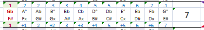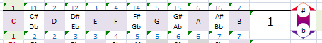 La gamme chromatique majeure © comporte des éléments enharmoniques créés par la superposition des notes signées (#Do/b Ré).