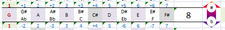 À laquelle, des notes signées viennent argumenter les intervalles (entre valeurs). En terme littéral l'approche de la tonalité n'irait pas sans une autre expression, telle de type numérique comme solution. Afin de clarifier la note, chrome aussi, qui a 2 états. La tonalité de la note lorsqu'elle est isolée, équivaut à la valeur 1. C'est harmoniquement que la tonalité se précise.