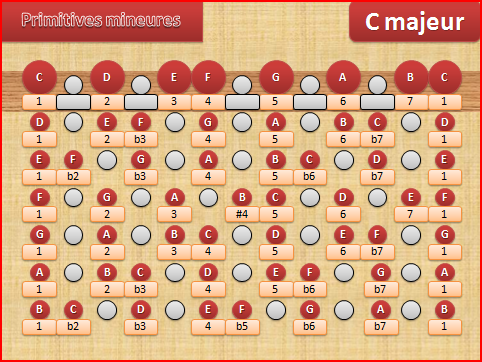 Dans le groupe des primitives mineures, il y a la gamme de C média ( quatrième mineure ).