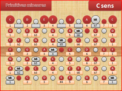Dans le groupe des primitives mineures, il y a la gamme de C sensible ( septième mineure ).