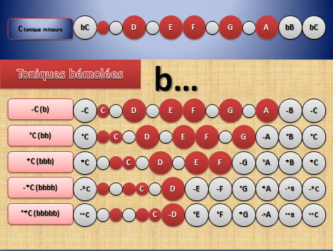 L’évènement, de l’altération porté sur la tonique est d’une clarté éblouissante. Car, en altérant simplement la note tonique. On fait une seule opération de recherche, on dit alors qu’on bémole la note C (exemple tonique naturel). En réalité, il y a un autre élément qui intervient. La tonalité de la gamme, à laquelle on a bémolé la note C. Nous dit tout autre chose, par une autre formule que celle d’origine (bC).