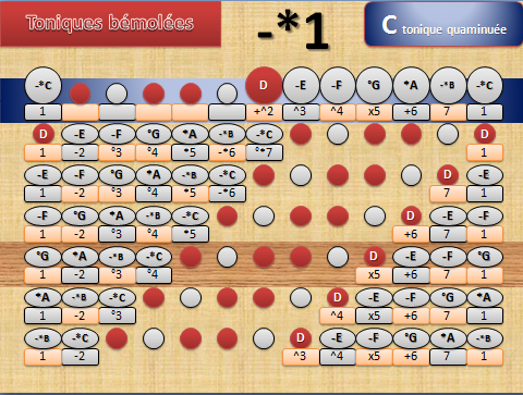Ce que les toniques bémolées apportent, par la découverte des formules modales. Ou encore, que les définitions des modèles de modulation venus d’un développement spécifique à la tonique altérée. Nous donnent un aperçu, sur la teneur diatonique de chaque modèle de gamme.