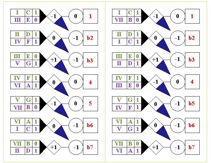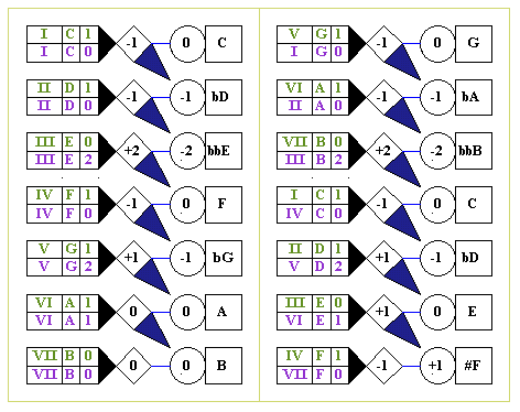 Tableau de gauche: ToniQue = (C, D, E, F, G, A, B), et