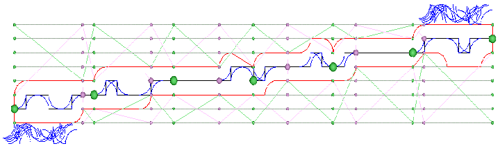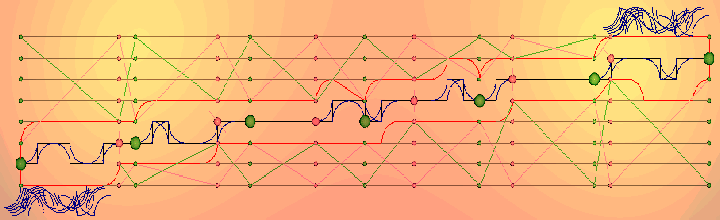 Les boules vertes " note ", les boules roses " section ligne ". Graduées iso .). L'enveloppe épouse la ligne, un gant.