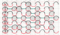Le Do/rouge, est placé sur les positions majeures, et sa formule binaire.* Le début/vert, commence par le premier degré de chaque mode, et idem pour la formule.